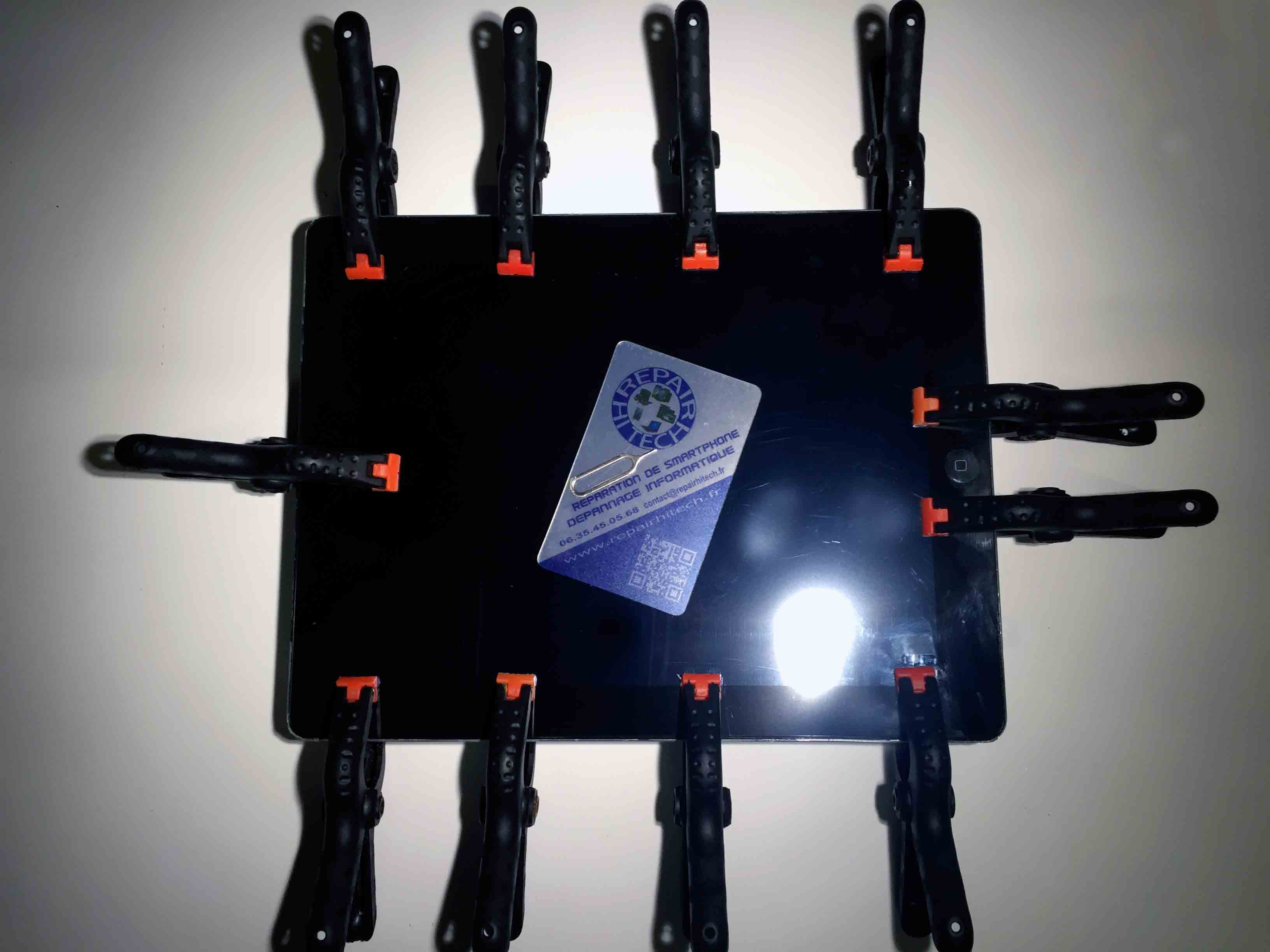 Mise en place de la colle pour la vitre tactile de l' iPad.