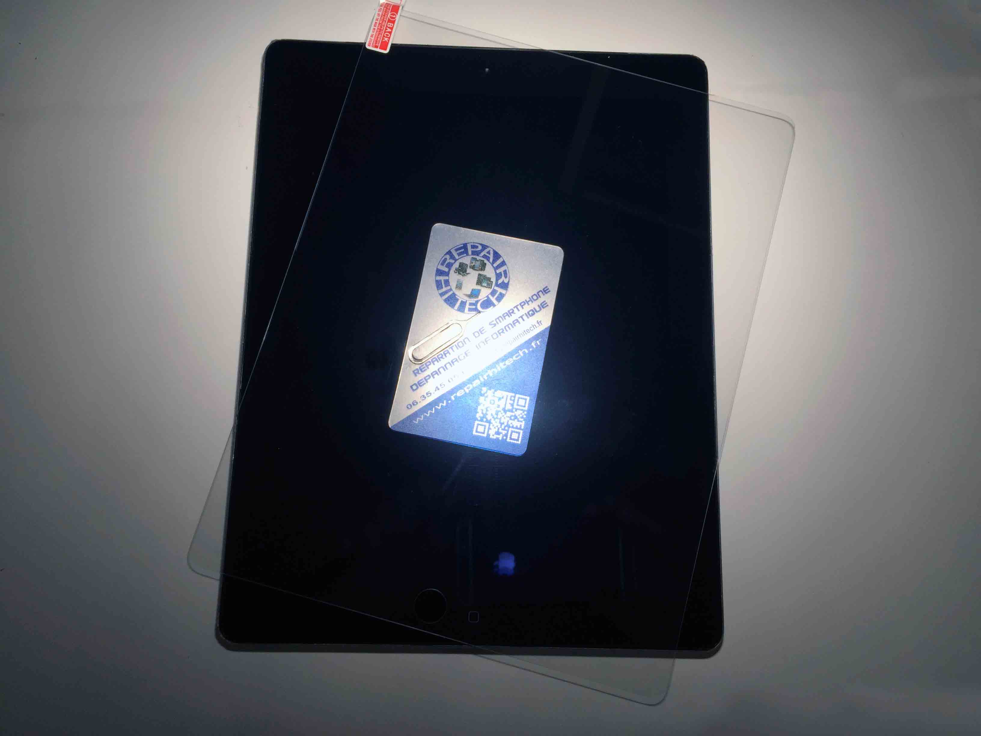 Préparation de la vitre en verre trempé pour iPad offerte.